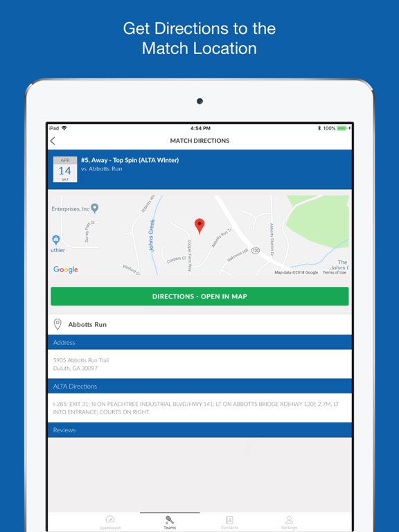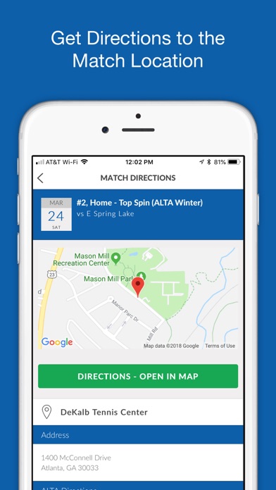 * Match Directions -- know exactly where you are going for your upcoming match. ALTA specific directions and other player reviews are also included.