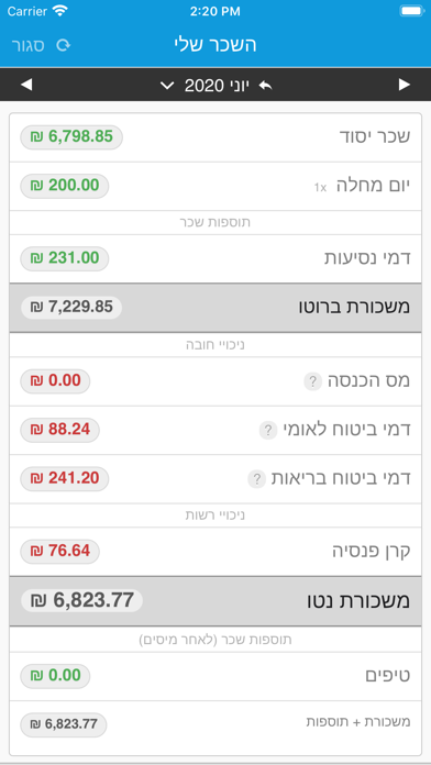 * חישוב אוטומטי של משכורת הברוטו החודשית תוך התחשבות בשעות נוספות, שבת/חג, נסיעות, בונוסים וטיפים.