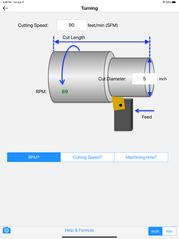 - Calculate RPM given Cutting Speed and Cutting Diameter