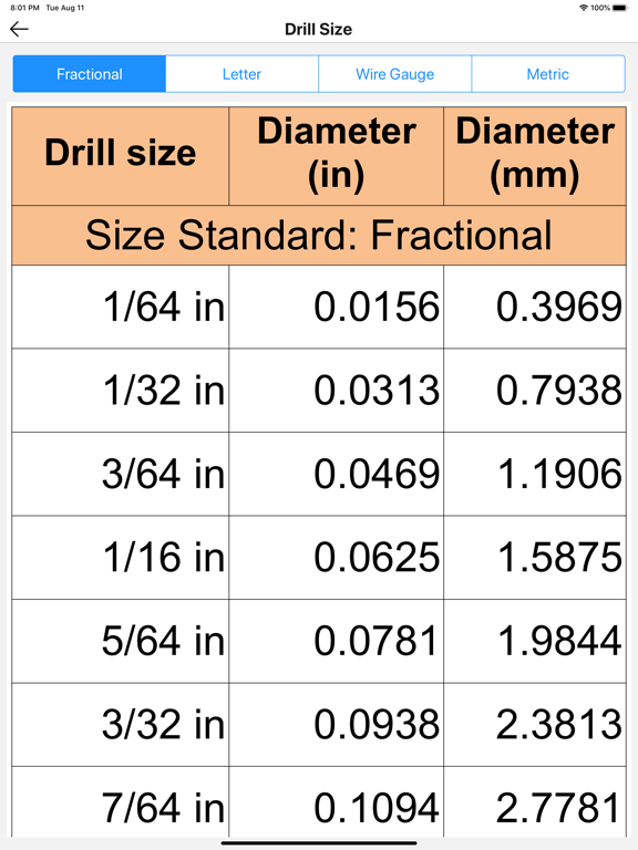 - Fractional, Letter, Wire Gauge and Metric Standards