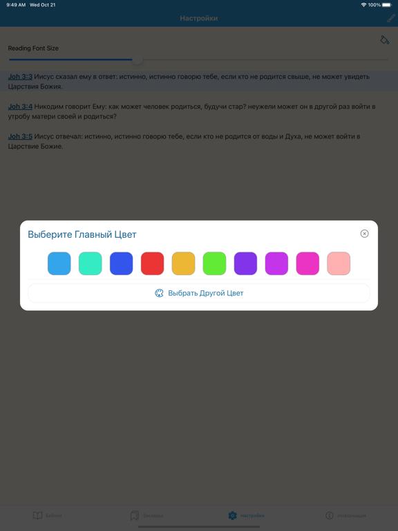 Приложение также предоставляет возможность изменить размер текста, цвет заднего фона и главный цвет в приложение что позволит Вам настроить вид под ваш собственный вкус.