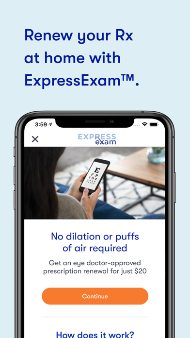 Tired of paying for an exam every year just to get the same prescription? Want to skip the trip to the doctor’s office? Use our app to take a quick vision exam with ExpressExam. A board-certified eye doctor will issue a new prescription within a couple of hours.
