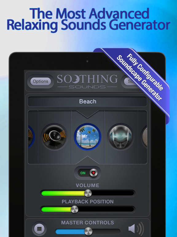 Soothing Sounds has been designed to be the most advanced soundscape generator available on the AppStore. It had a fully customisable sound library so you’ll never hear the same 10 seconds of sound and configurable volume and intensity levels so you can finely tune your scenes to your own personal preferences.