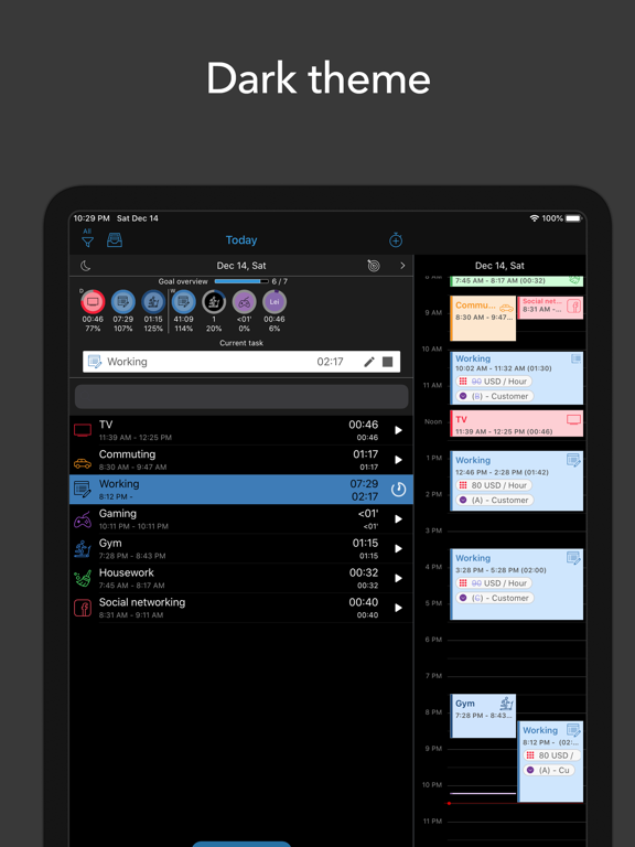 ATracker is a time tracking app that is very easy to use and requires minimal setup. It supports: one tap to start / stop time tracking; bar or pie charts showing where your time went; fully customizable user interface; categorize tasks with tags; data export as CSV and PDF; sync data between multiple devices; start/stop tracking via Apple Watch, Widget and Siri.