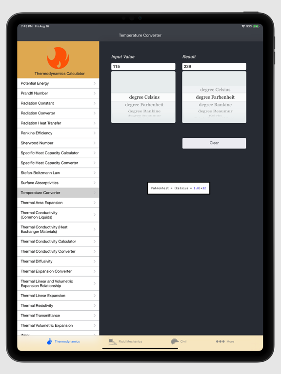 Thermodynamics Calculator contains following 44 Calculators related to Thermodynamics with Thermal Engineering Tables.