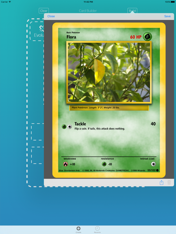 Whether it is taking a picture of your friend to turn into a Pokemon or just creating that perfect card, Card Builder is your must have app! After you build your card to perfection you can share it with your friends to show that your card is truly the best. Why capture them all when you can create your own?