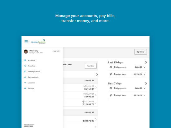 Manage your accounts, view copies of your cleared checks, and view transaction history. Busy members can also make quick transfers within Keesler Federal accounts and find the closest ATM in Keesler Federal’s network.