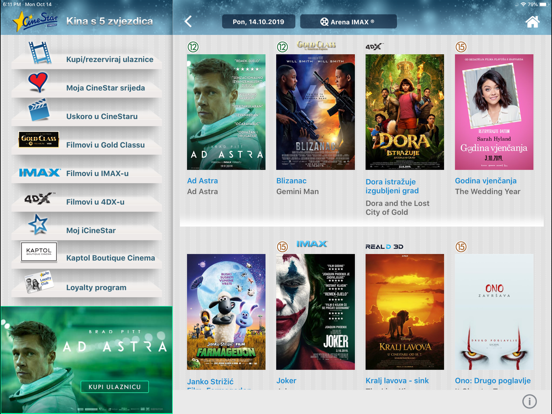 - Pregledajte filmove prema dostupnim formatima- GOLD CLASS, IMAX I 4DX