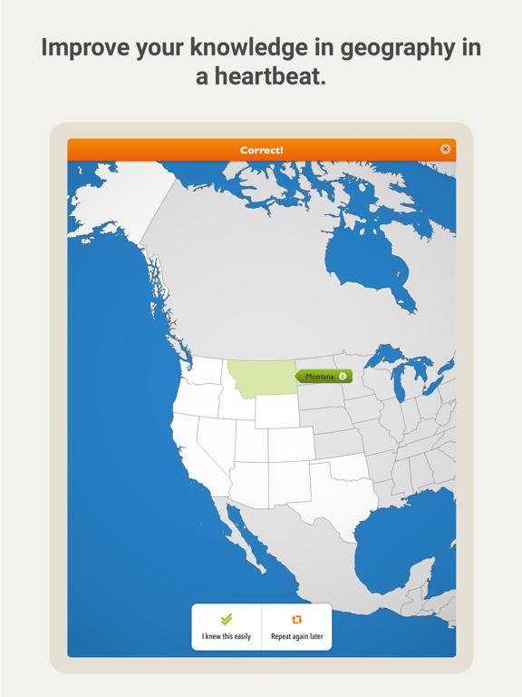 Geography Trainer facilitates effective and optimal learning: The app saves your learning progress and repeats countries you already know less frequently, while repeating questions you have answered incorrectly more often.
