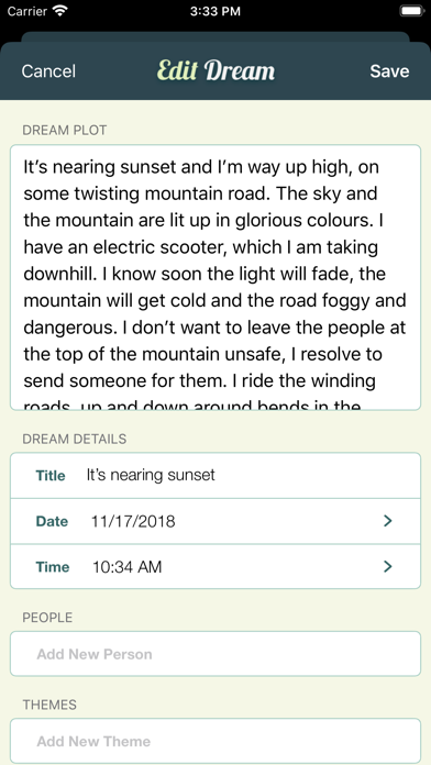 - ADD DETAILS: add more information to your dream by adding people and theme tags, as well as other notes about your dream