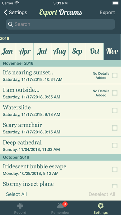 - EXPORT: share your dreams with the world as text, text files or PDF files using your favorite apps and services