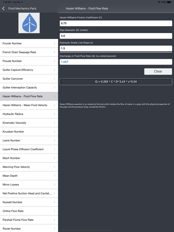 Fluid Mechanics Pack contains 97 Calculators & 28 Converters to calculate different Fluid Mechanics & Civil Engineering parameters.