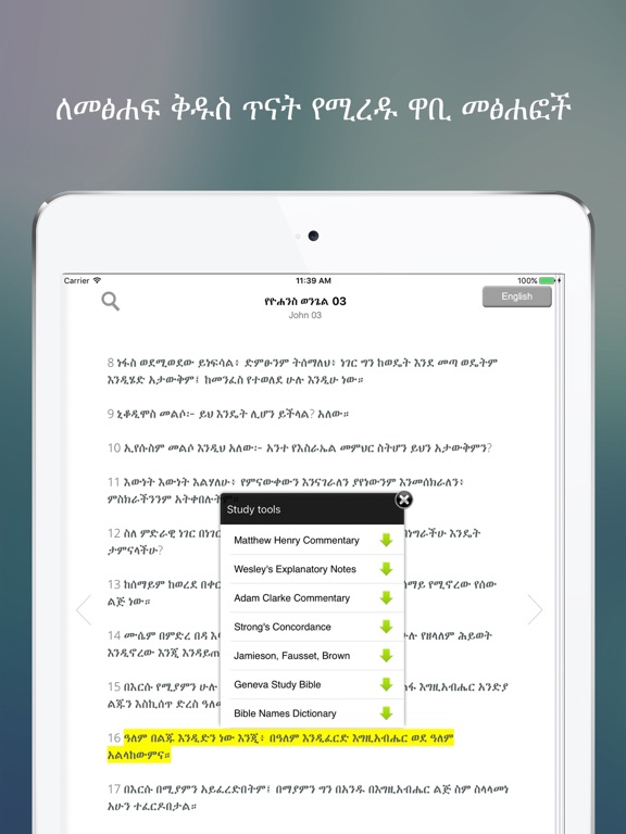Get the most popular Amharic Bible app in the Appstore for your iphone/ipod/ipad.