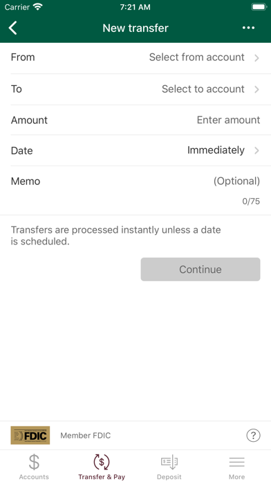 The app uses the same bank-level security that protects online banking. No personal or confidential information is stored on your mobile device.