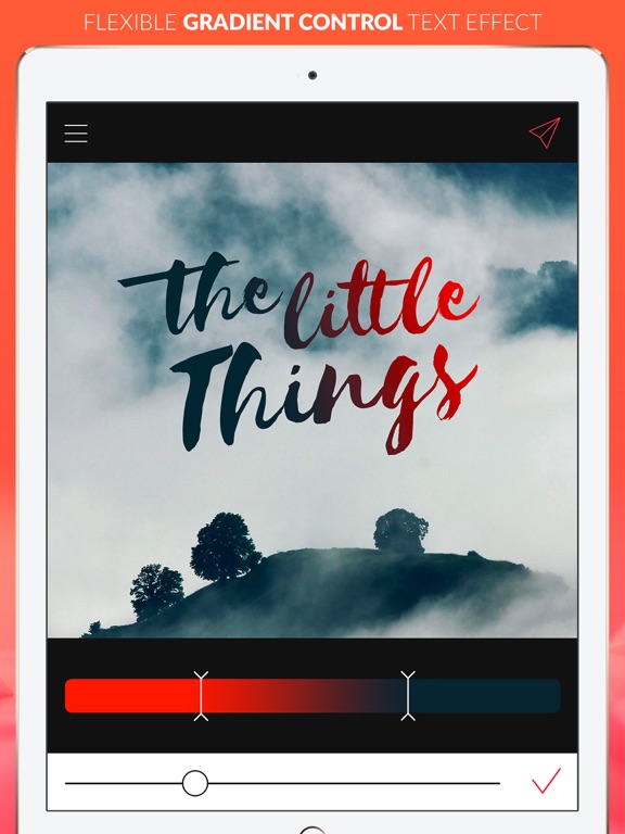 • Eraser tool to gradually delete parts of text - useful for placing the text designs behind other elements in your photo.