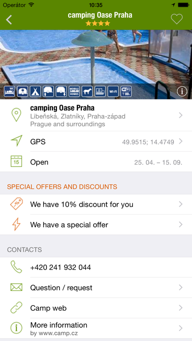 U každého kempu naleznete kontakty, otevírací dobu i jaký typ ubytování Vám nabízí.