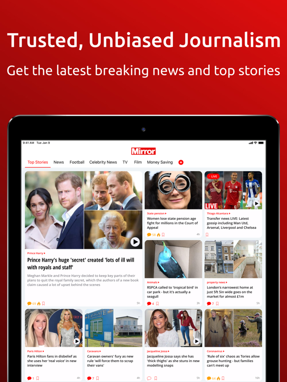 Follow the latest news from your favourite football, rugby and cricket teams. Get the latest celebrity gossip. Stay informed with TV interviews and exclusive money saving tips, all from The Mirror App.