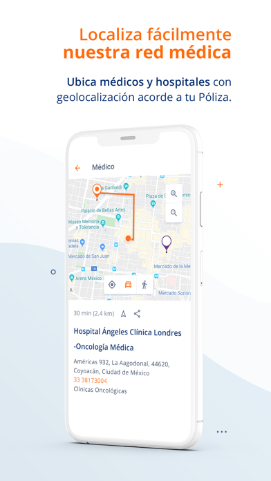 - Ubica nuestra red médica cercana, accede a médicos y hospitales en convenio de acuerdo a tu plan contratado.