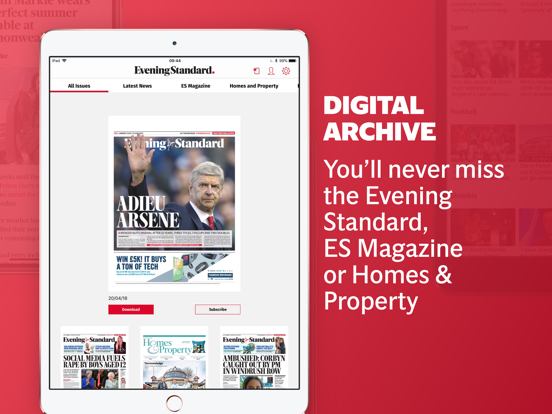 • 30 day archive of the newspaper and all printed supplements, including ES Magazine and Homes & Property