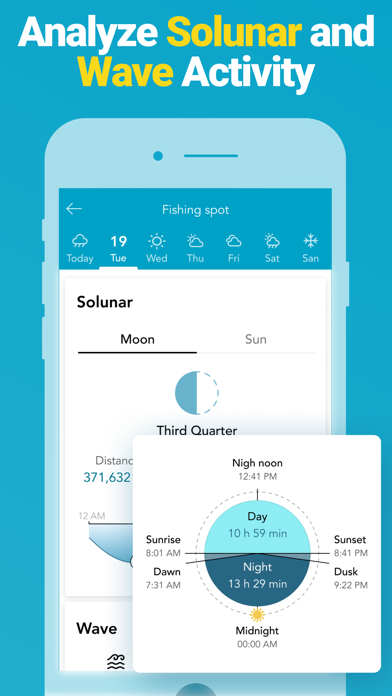 Improve your fishing skills, check proven fishing spots near you and find out when exactly the best fishing times occur!