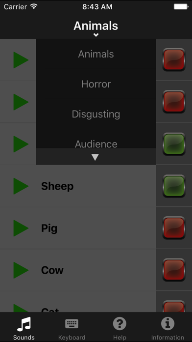 Use gestures to switch between categories and pick among the many available sounds. We have simplified the app in order to make it accessible to everybody, even the kids, with a clear interface and big buttons.