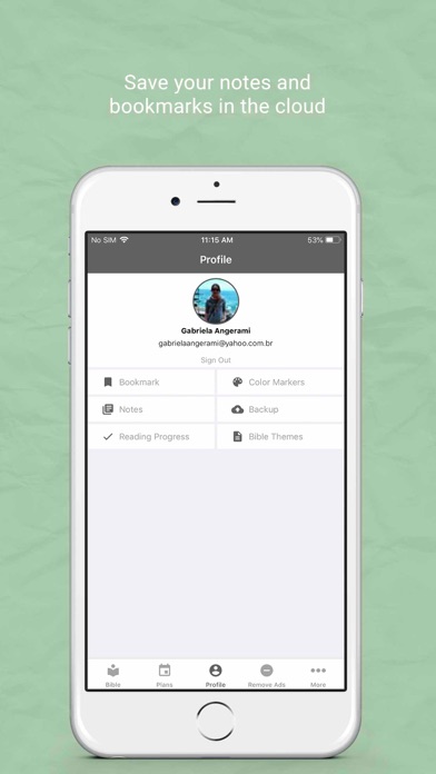 o Reading Progress: users can mark the chapters as "read" and can track the percentages of what they have read in relation to each book, the whole Bible, and the Old and New Testaments.