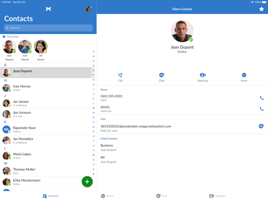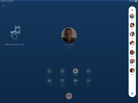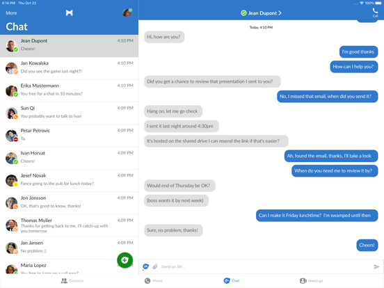 Seamless, one-click uplift of calls or chats to a full Meeting for those spontaneous collaboration sessions.