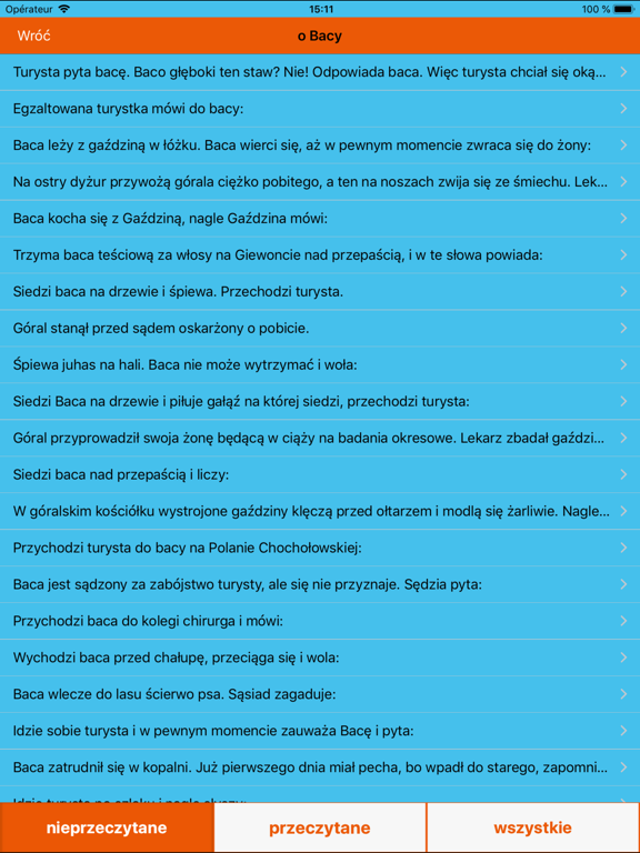 W tej aplikacji otrzymasz zbiór około 8000 tysięcy kawałów i dowcipów w kilkudziesięciu kategoriach. Idealna aplikacja na wakacje, spotkanie przy piwie, imprezę, w podróży itd.