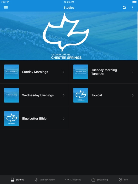 The Calvary Chapel Chester Springs app was developed with the Subsplash App Platform.