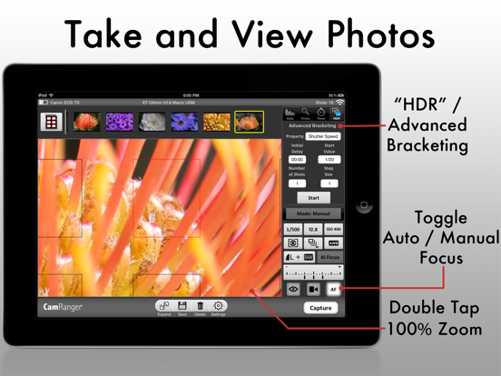 The first of its kind, no other computers or Internet needed! Just connect your camera to the CamRanger and then control wirelessly from your iOS device.