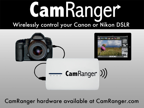 Using CamRanger hardware (purchased separately from CamRanger.com) wirelessly control your Nikon or Canon DLSR camera!