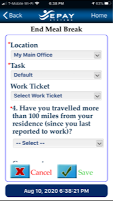 Location based (GPS) Dropdown list selections for Work Group (Site), Task, and Work Ticket – selections are filtered based on current GPS location.