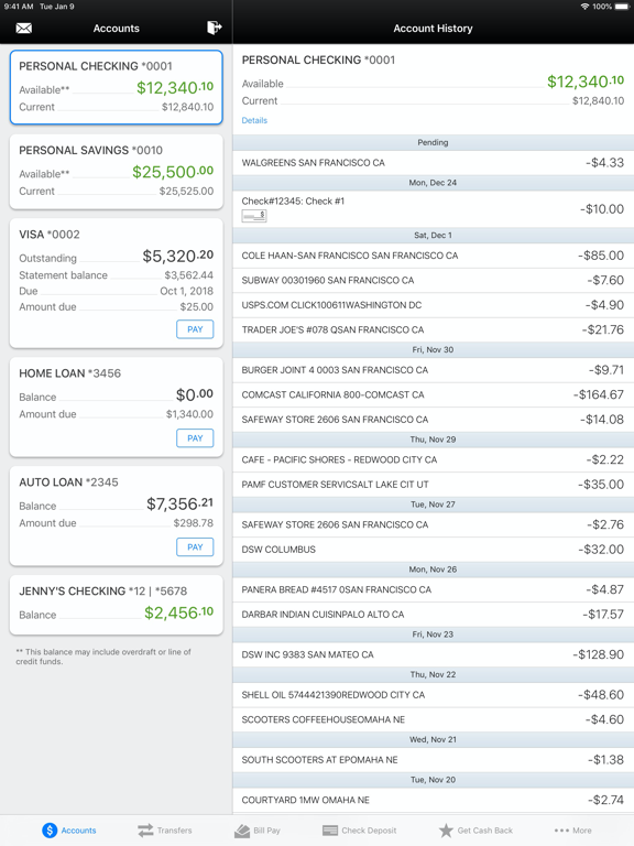 Your security is our priority. Mobile data transmissions are safeguarded by 128-bit SSL (Secure Socket Layer) to prevent unauthorized access. We also provide an automatic inactivity lockout feature should you ever leave your phone unattended while in your account. We'll never transmit your account number information, and no private data is ever stored on your phone.