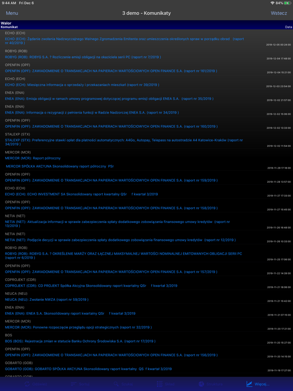 ● Powiadomienia o komunikatach ze spółek bezpośrednio na Twój smartfon.