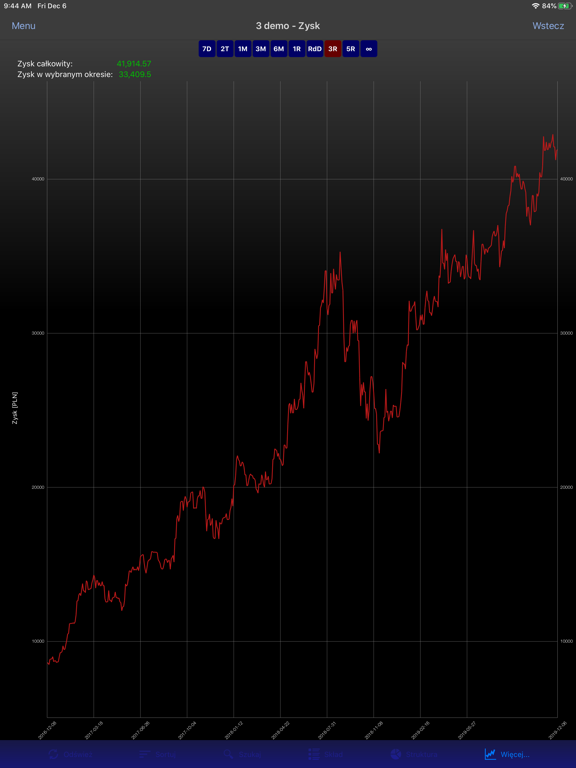 ● wykresy obrazujące zysk, wartość i wiele innych wskaźników w czasie
