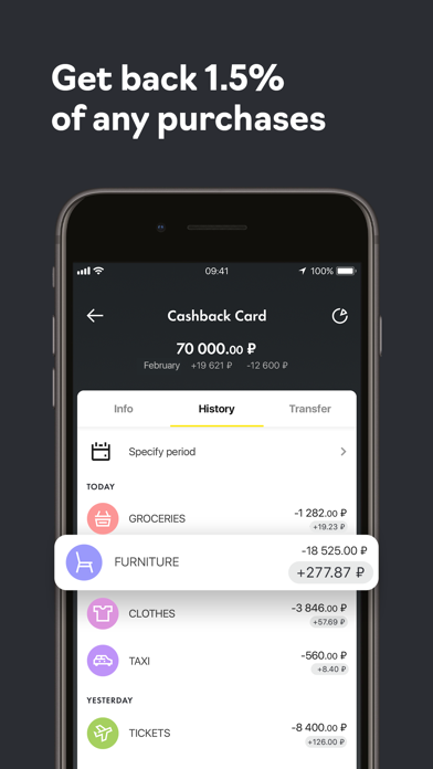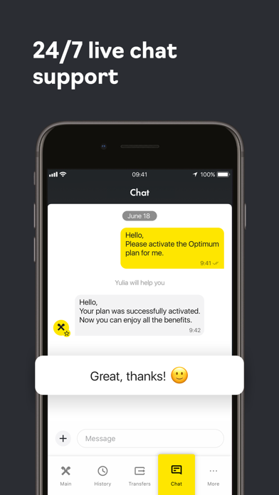 • quick access to transactions history, forms of payments and transfers, chat, app settings