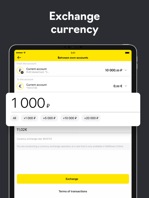 Using Raiffeisen Online mobile app, you can manage your accounts, cards, loans, and deposits, make secure payments and money transfers, exchange currency, open new products, control expenses and get direct online consultation with Bank employees.