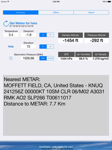 AutoDens does all the air density calculation at just one single touch.