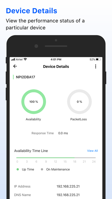 OpManager is complete, end-to-end network monitoring software that offers advanced fault and performance management functionalities across critical IT resources such as routers, WAN links, switches, firewalls, VoIP call paths, physical servers, virtual servers, domain controllers, and other IT infrastructure devices. You are only able to access your machine setup using this app if you're already running OpManager on-premises, and you can use this app to access the machine setup from your Apple device (iPad and iPhone). This app helps data center administrators stay connected to their IT and access it from anywhere, anytime. It offers quick access to the OpManager on-premises tool to view the performance of devices and troubleshoot faults instantly. This app is not stand-alone.