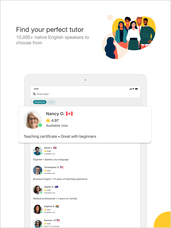 Cambly gives you instant access to native English speakers over video chat. Your friendly language partners are ready to help you practice conversation skills, pronunciation, and any other English skills you'd like to improve. Cambly is a great way to practice English for beginners or experts. Give it a try!