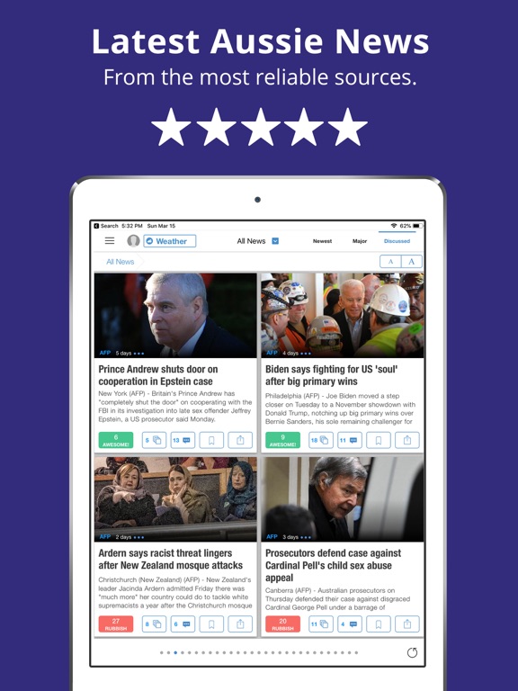 The app features content from leading online news & video sources, including Sky News, Yahoo, Perth Now (and more) and covers news from all states: New South Wales, Queensland, South Australia, Tasmania, Victoria and Western Australia.