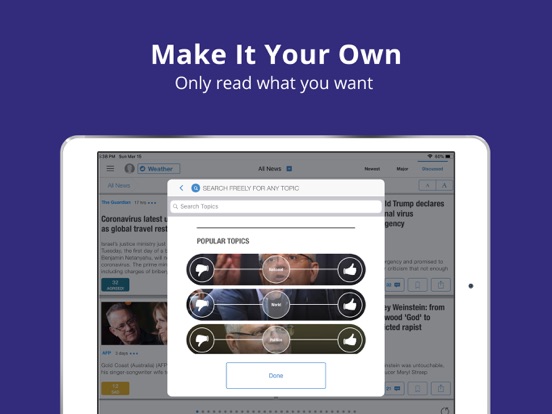 * Make it your own - create a personalized feed by selecting the topics you care about. You can also block topics you don't want to hear about.