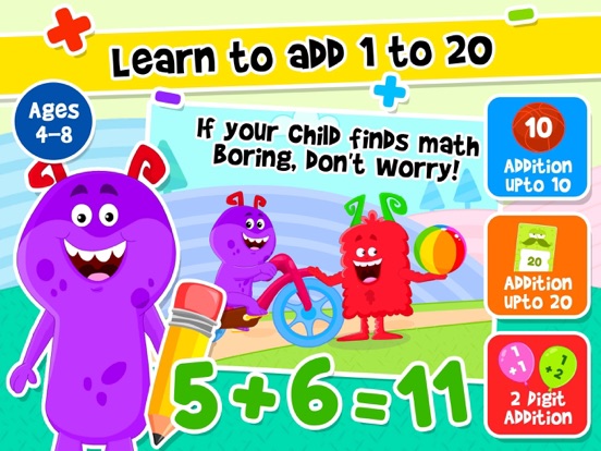 Kidlo Addition & Subtraction is an ideal app for Pre-K to Grade 2 kids to learn addition and subtraction easily. Kids in the age group of 4-8 years can learn to add and subtract by playing 350+ fun games! Kidlo Addition & Subtraction is the perfect companion for first-grade students to learn math.