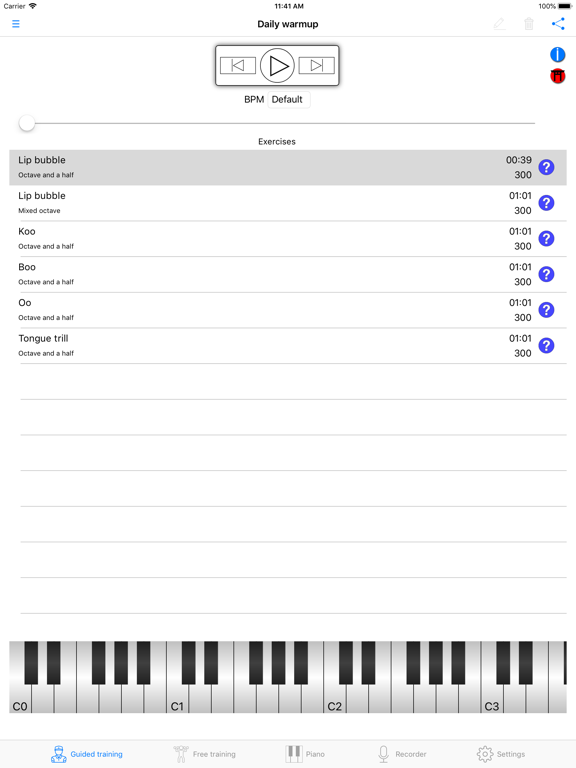 - An advanced tool for expert singers and vocal technique teachers with which you can make your own custom workouts.