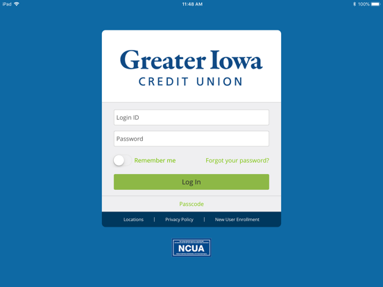 This free app allows you to access your Greater Iowa Credit Union accounts to check balances, view transactions, transfer funds and check your messages. Go mobile with Greater Iowa’s banking app! You can: - Check balances - View pending items and transaction history - Search by date and description - View, approve or cancel transactions - Transfer funds - View and create secure messages