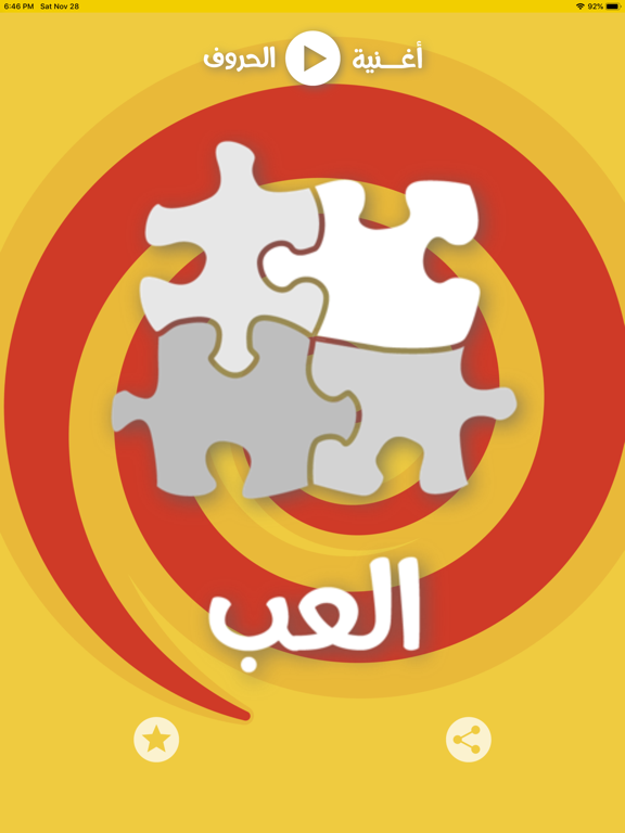 - All the Arabic letters where a short song plays showing the letter pressed followed by a word that starts with that letter