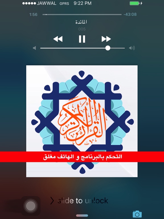 ٣- و من المميزات المهمة جدا انه تستطيع الاستماع للقران حتى بعد و ضع الهاتف في حالة الاغلاق مما يحافظ على الجهاز و بطاريته