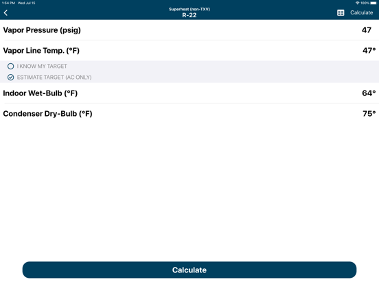• Superheat Calculator (non-TXV)