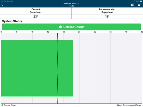 The HVACR Check & Charge™ mobile app from Emerson Climate Technologies provides an on-site refrigerant charge calculator for air conditioning and refrigeration applications. Based on historic sliding cardboard charge calculators, this app allows contractors to easily calculate the correct system refrigerant charge for R-22, R-410A, R-32, R-407C, R-134a, R-452B, R-454B, R-438A, R-422B, R-427A, R-421A, R-404A, R-290, R-449A, R-448A, and R-407A. Contractors can simply choose Superheat, Subcooling, or Airflow and enter the specified system temperatures along with the latent and sensible environmental loads. These values are then used to determine the proper system charge and whether the charge amount needs to be altered based on these conditions.