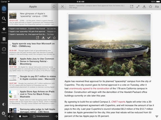 Newsdaily clipping functions gives you the ability to store interesting articles on your device. You can classify clippings by folder to read later.